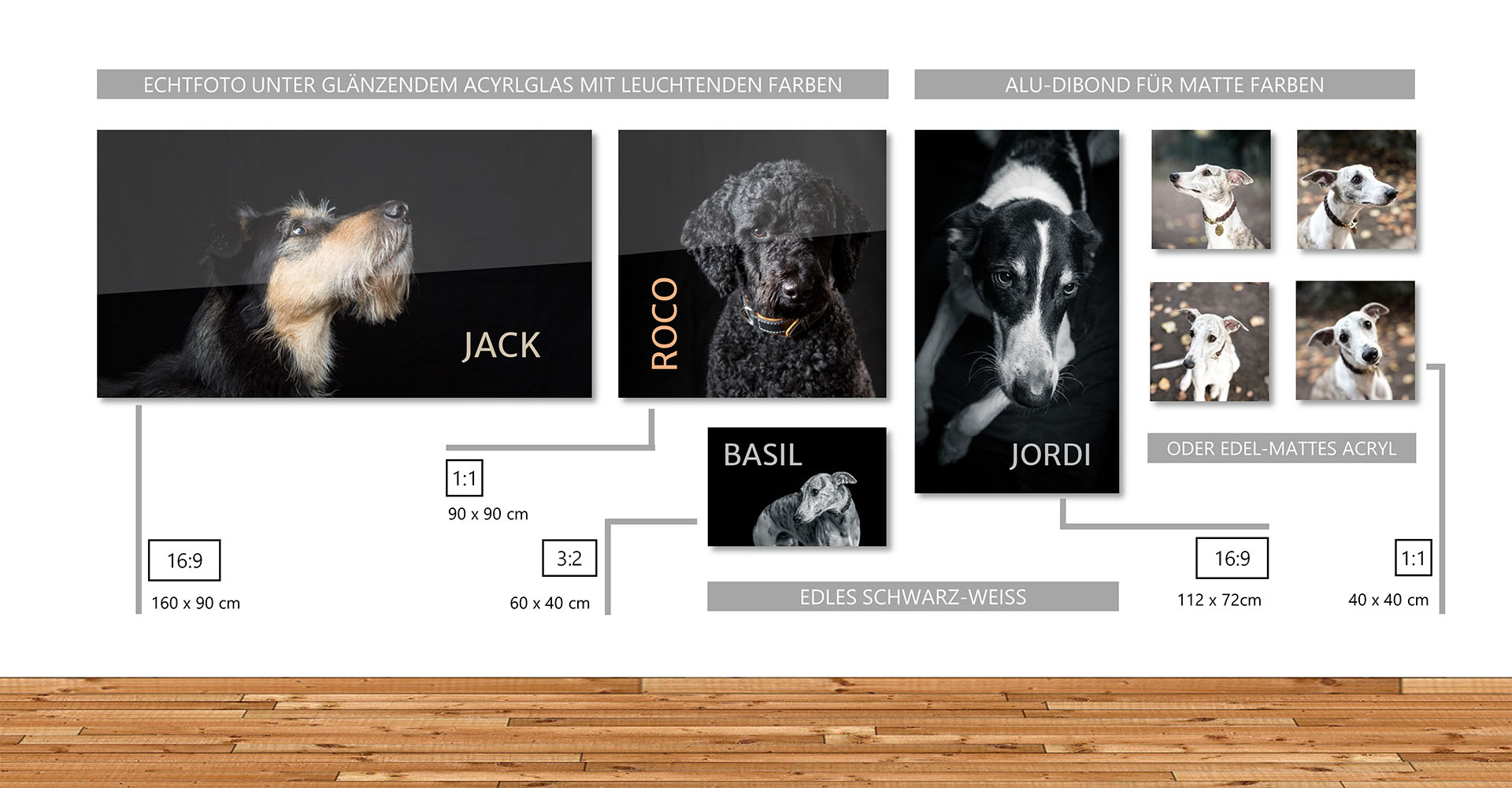 Größe und das Material (z.B. Acrylglas oder Alu-Dibond) wählen und wir machen Ihnen ein individuelles Angebot. Die Anfrage können Sie ganz einfach per